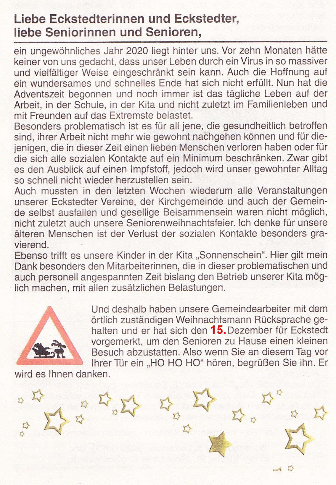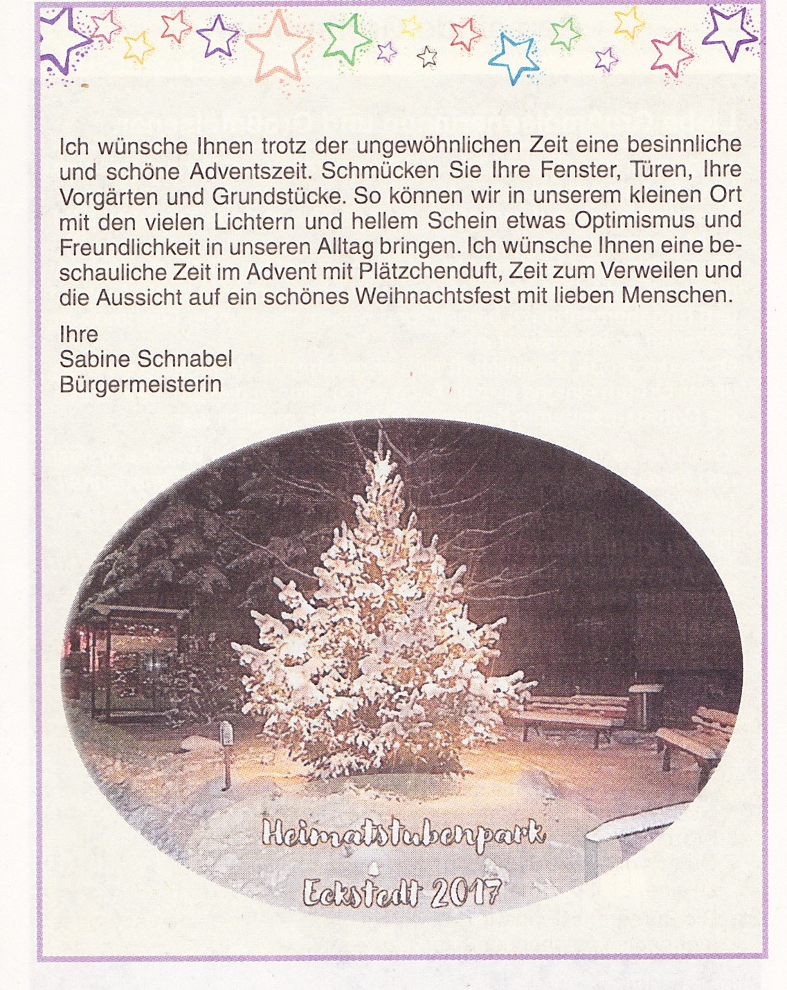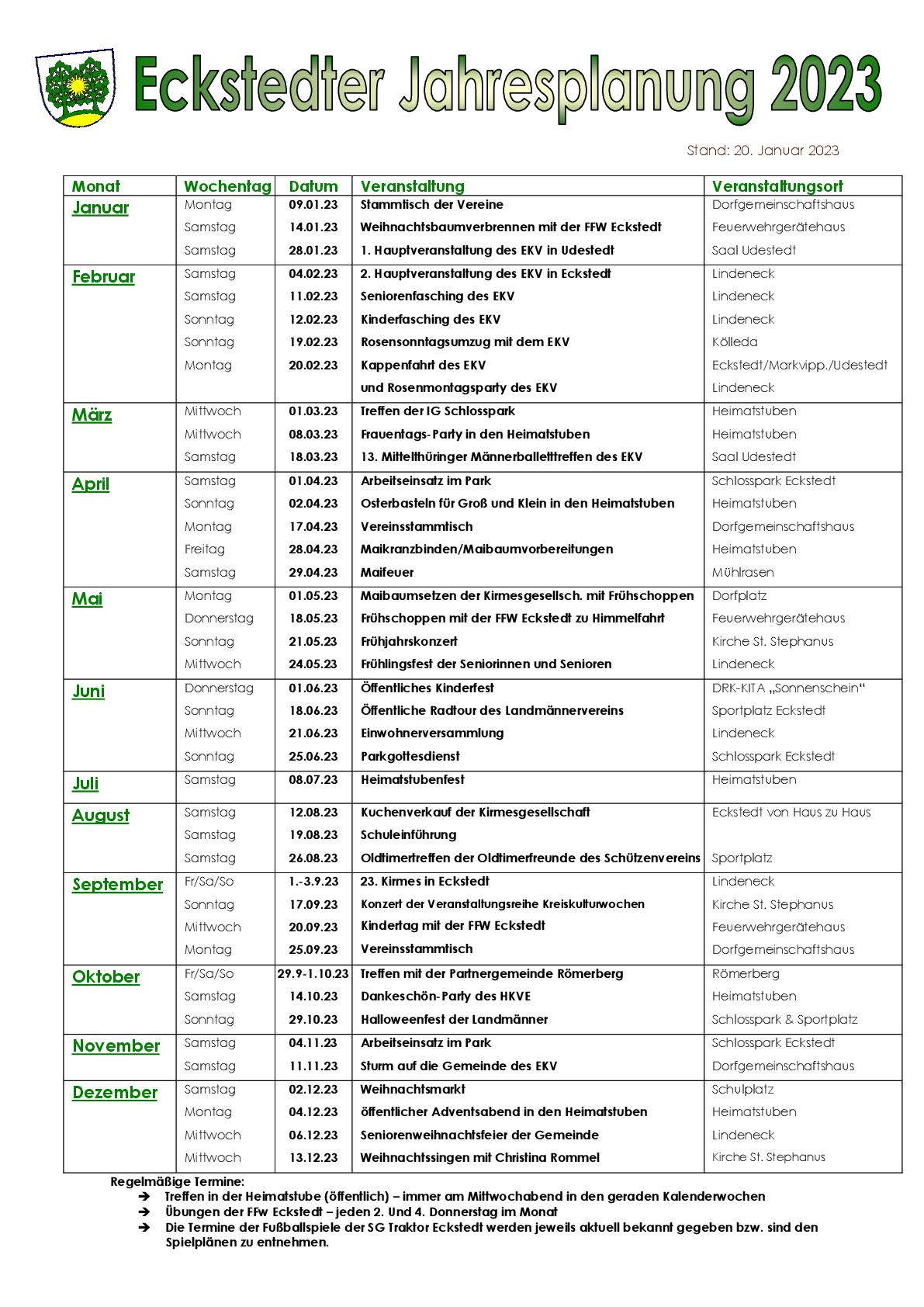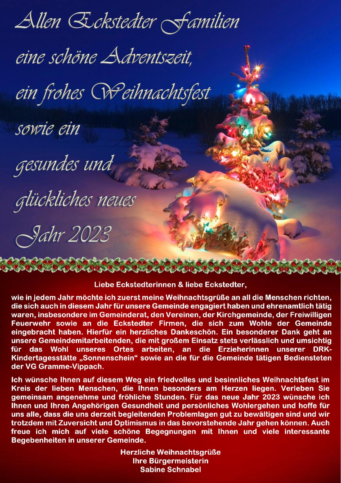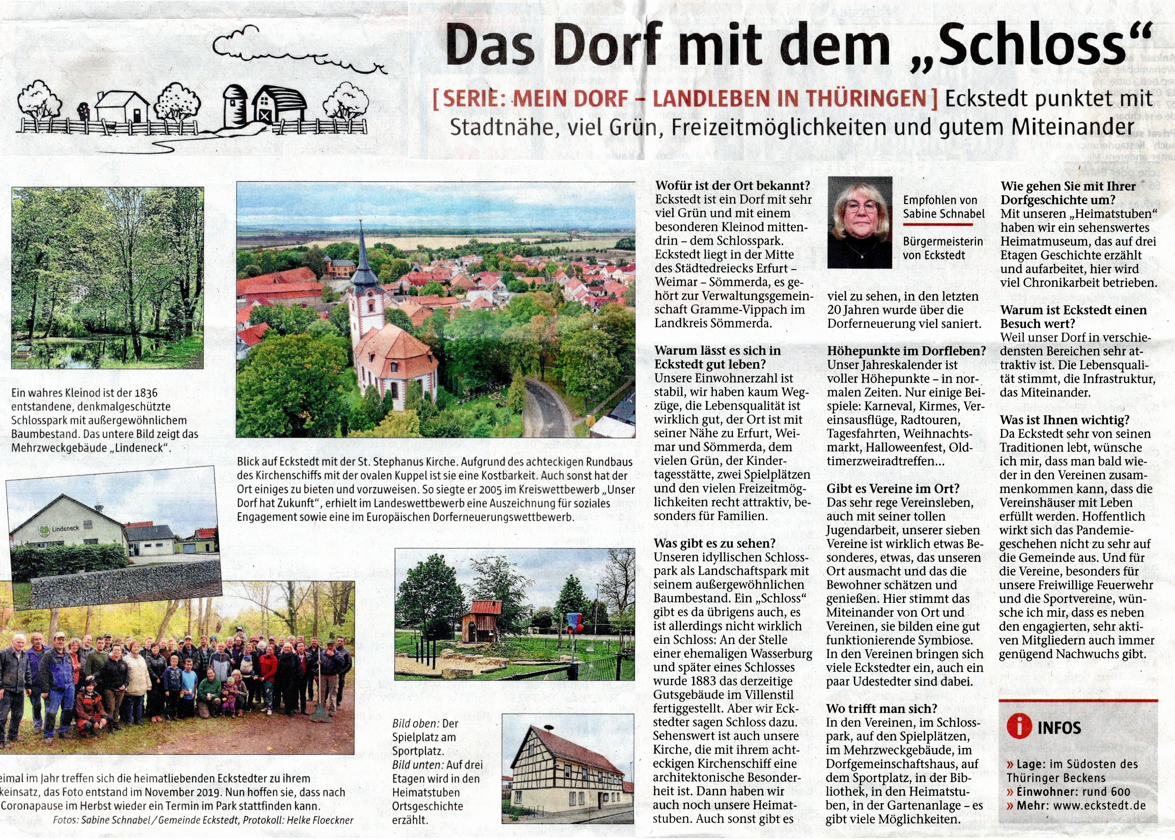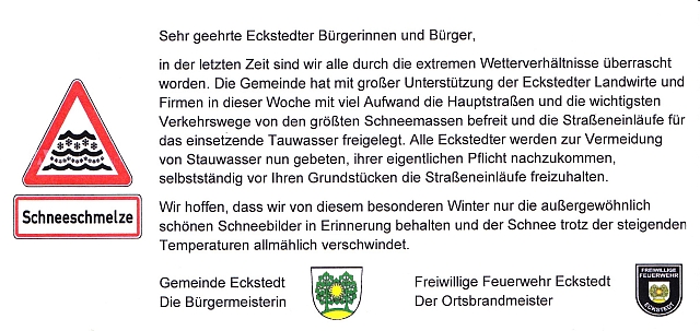 Gemeinde Eckstedt mit ihren Angeboten und Möglichkeiten vor. So finden Sie hier neben einer Schnellinformation, aktuellen Infos sowie geplanten und bereits fertiggestellten Projekten auch einen Terminplan in dem alle öffentlichen Veranstaltungen der Gemeinde und unserer Vereine für das ganze Jahr aufgeführt sind. Einige Informationen können Sie auch unserem Gemeindeflyer entnehmen. Gemeinde Eckstedt Sabine Schnabel Bürgermeisterin |