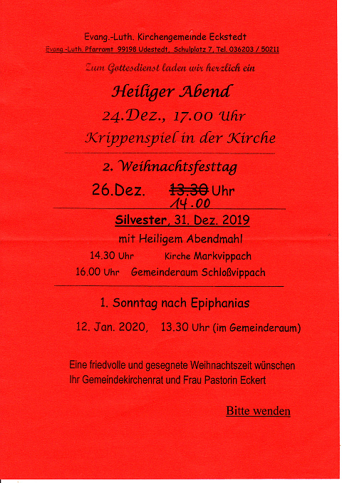 in der Kirche St. Stephanus zu Eckstedt Adventskaffee bleibt!