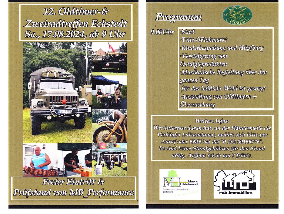 Sonnabend, 17. August 2024 ab 09:00 Uhr am Sportplatz