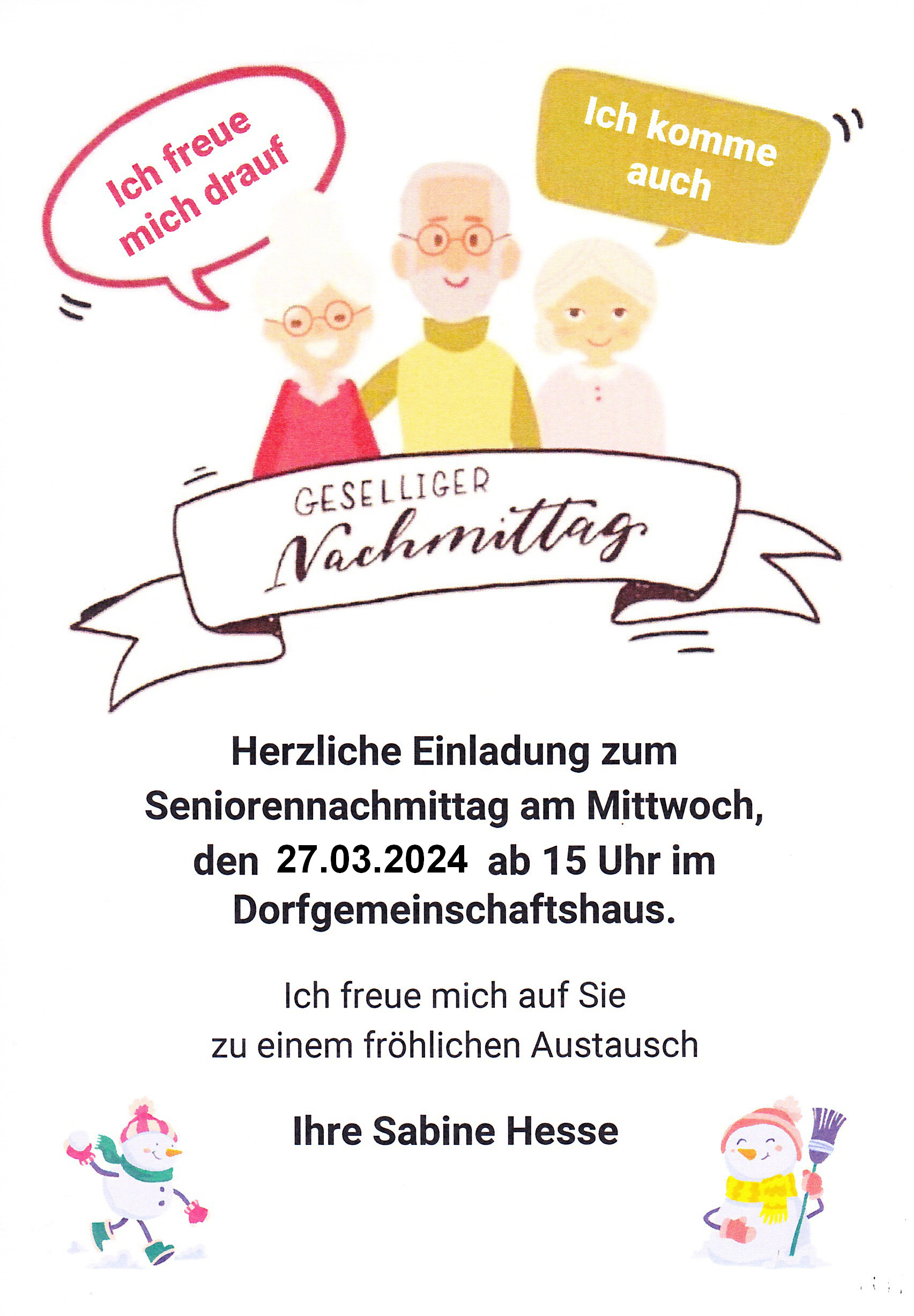 ab 15:00 Uhr im Dorfgemeinschaftshaus
