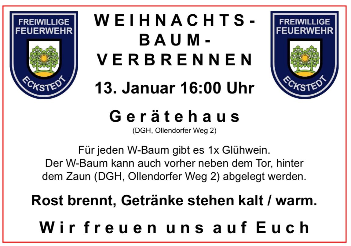 Samstag, 13. Januar 2024 ab 16:00 Uhr am Feuerwehrgerätehaus