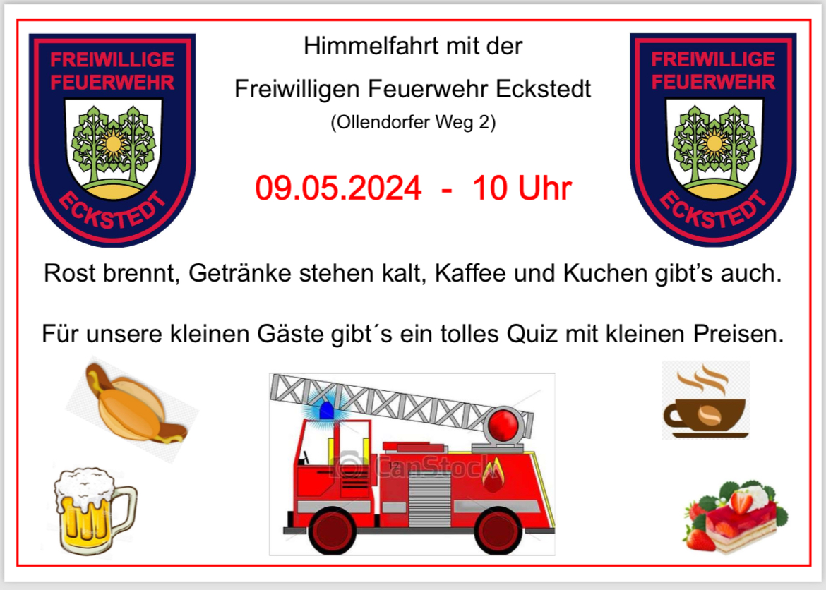 Donnerstag, 29. Mai 2025 ab 10:00 bis 17:00 Uhr am Feuerwehrgerätehaus